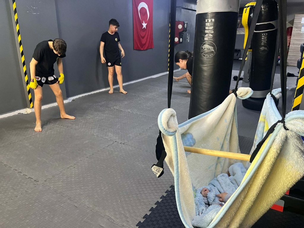 İzmir’de yaşayan ve kick boksta dünya şampiyonluğu bulunan milli sporcu Yeliz Koblay Tekin (38), antrenör olarak ders verdiği salonda 3 aylık bebeği ‘Arel’ ve 6 yaşındaki oğlu ‘Arden’i büyütüp, derslerine dahil ediyor. Çocuklar sporla büyürken, salon bir aile ortamına dönüşüyor.