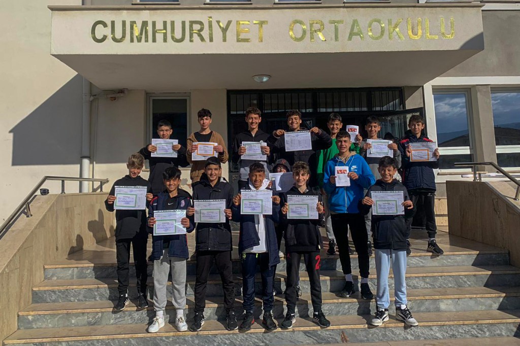 İzmir İlçesi Selçuk Cumhuriyet Ortaokulu Altınordu U13-U14 17 Futbolcu Karne Aldı.