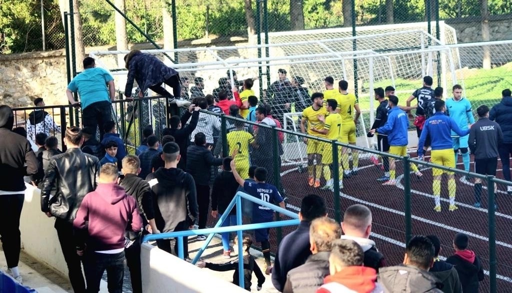 İddiaya göre, soyunma odalarına giden Urla Belediyesporlu futbolculara, tel örgülerin üzerinden sahaya atlayan taraftarlar saldırdı. Tekme ve yumruklu kavgada bazı futbolcular ve fanatik taraftarlar yaralandı. 20 dakika süren olaylarda, soyunma odasında mahsur kalan Urla Belediyesporlu sporcular ve hocaları, ilçelerden takviye gelen polis ekipleri tarafından, güvenli şekilde stattan çıkarıldı. Tekme ve yumruklu kavga anı ise maçı izleyen bir vatandaş tarafından kaydedildi.