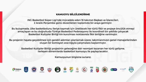 Basketbol Kulüpler Birliği Resmen Kurdu. Petkimspor Pınar Karşıyaka Kurucu Kulüpler Yer Alıyor. Kerim Küçük.