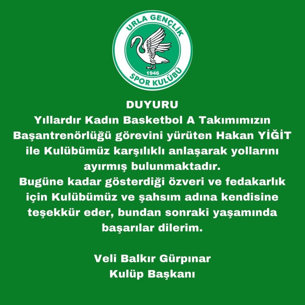 TKBL Ekibi Urla Belediyespor Şok Açıklama Yaptı. Urla Belediyespor Kulüp Başkanı Veli Balkır Gürpınar Yazılı Açıklama Yaptı. Urla Belediyespor Başantrenörü Hakan Yiğit Yollar Ayrıldı.