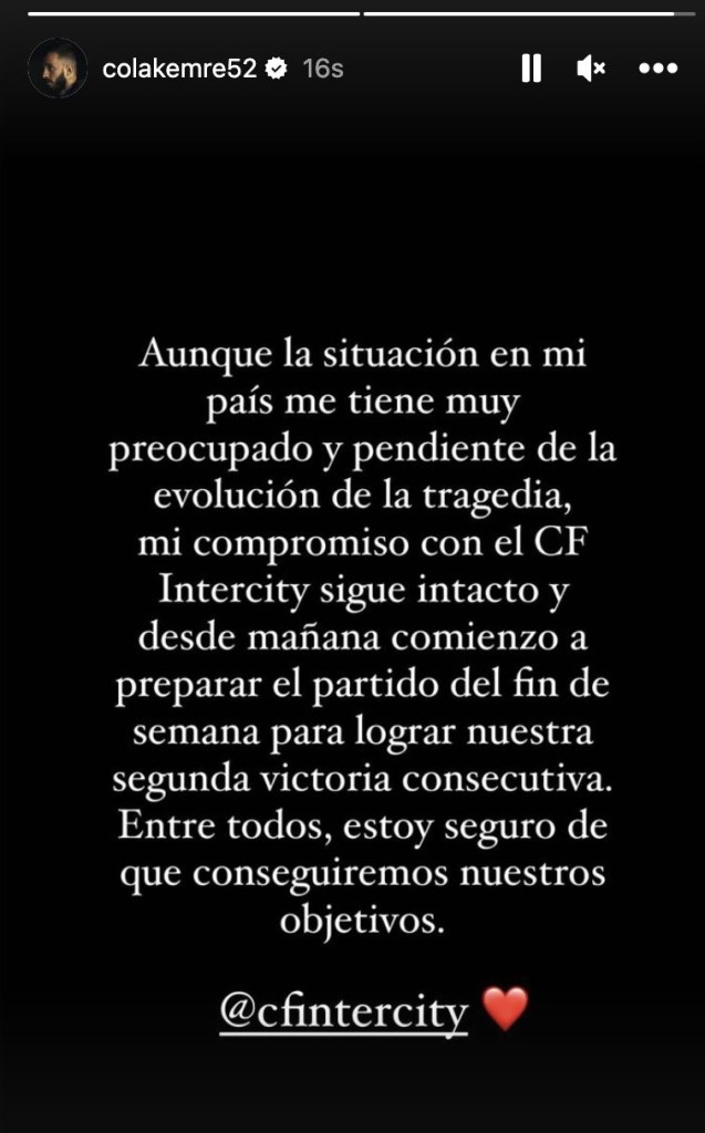 Spor Toto 1.Lig Ekibi Göztepe Forma Giydiği Emre Çolak Instagram Hikaye Açıklama Bulundu “Ülkemdeki trajedi beni çok endişelendiriyor ancak Intercity’ye olan bağlılığım devam ediyor. Yarından itibaren bir sonraki maçımızı kazanmak için çalışmalara başlayacağım” Dedi.
