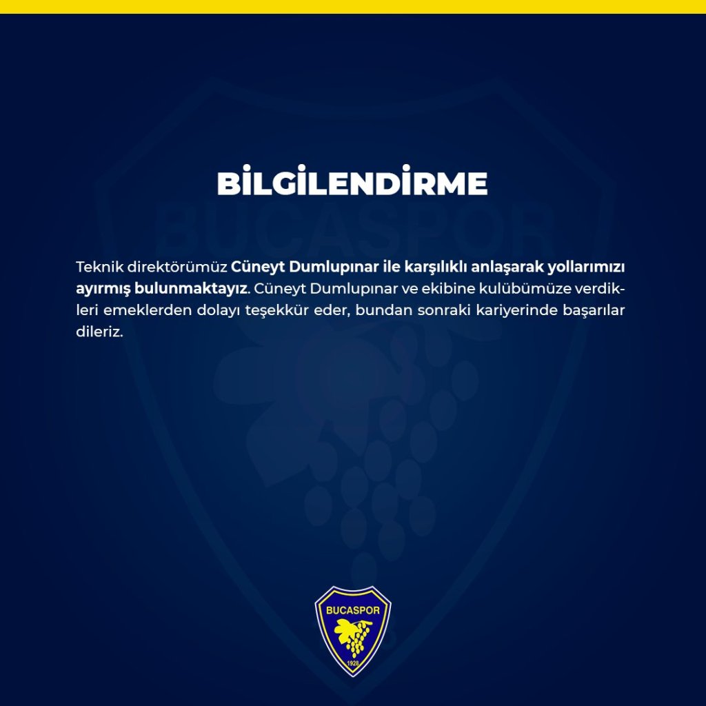 Bucaspor Teknik Direktörü Cüneyt Dumlupınar Karşılıklı Anlaşmayla Yolları Ayrıldığı Duyuruldu.