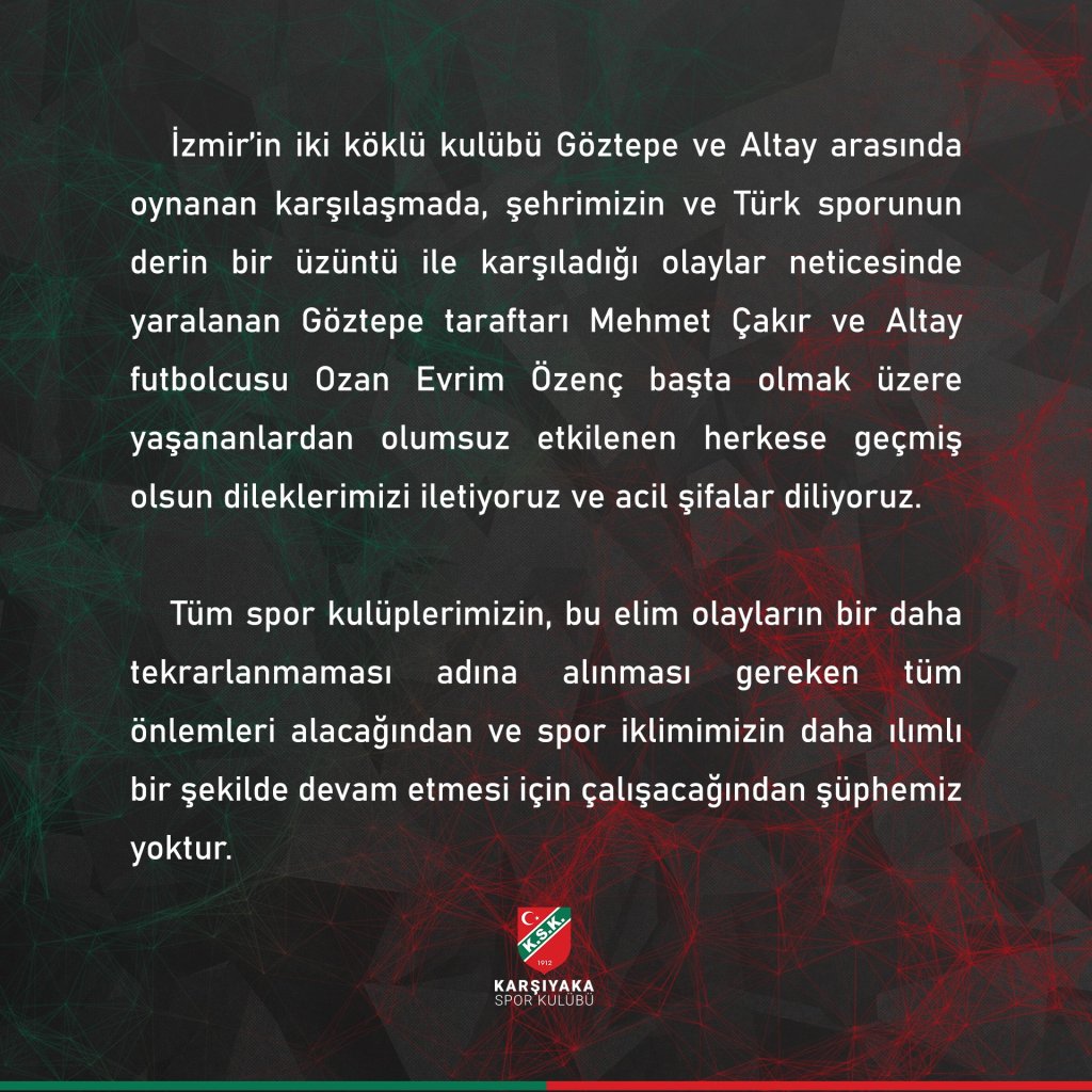 Göztepe Ve Altay Çirkin Ve Kötü Tezahüratı Saha Olayları PFDK Sevk Edildi. Öte Yandan TFF 3.Lig 1.Grup 13.Hafta Karşıyaka-Çatalcaspor Maçı Karşıyaka Futbolcusu Polat Abay İhraç Öncesi Ve İhraç Sonrası Rakip Takım Sporcusuna Yönelik Şiddetli Hareketi Gerekçesi 3 Resmi Maç Men Edildi.