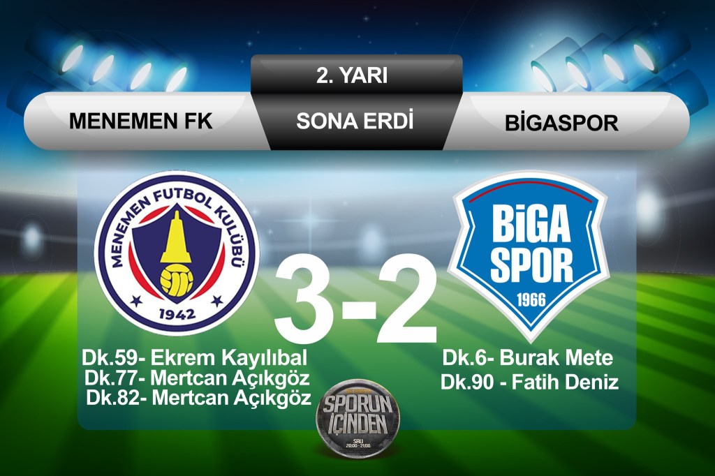MENEMEN FK kaleci antrenörü KIVANÇ BOZKURT TFF 2.Lig Beyaz Grup Anagold 24 Erzincanspor-Menemen FK Maç Hakemi Yönelik Hakareti 3 Resmi Maç Ve Yedek Kulübü Giriş Yasağı Geldi. 6.000 TL Para Cezası Geldi. Öte Yandan Bergama FK TFF 3.Lig 3.Grup Bergama FK-Fatsa Belediyespor stadyumda en az bir yedek kalenin kullanıma hazır bulundurulmamasından dolayı talimatlara aykırı İhtar Cezası Geldi.