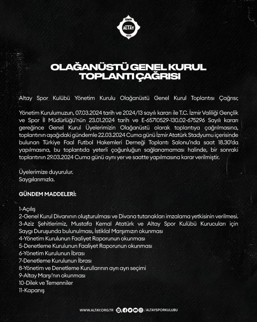 Altay Yeniden Olağanüstü Genel Kurula Gidiyor