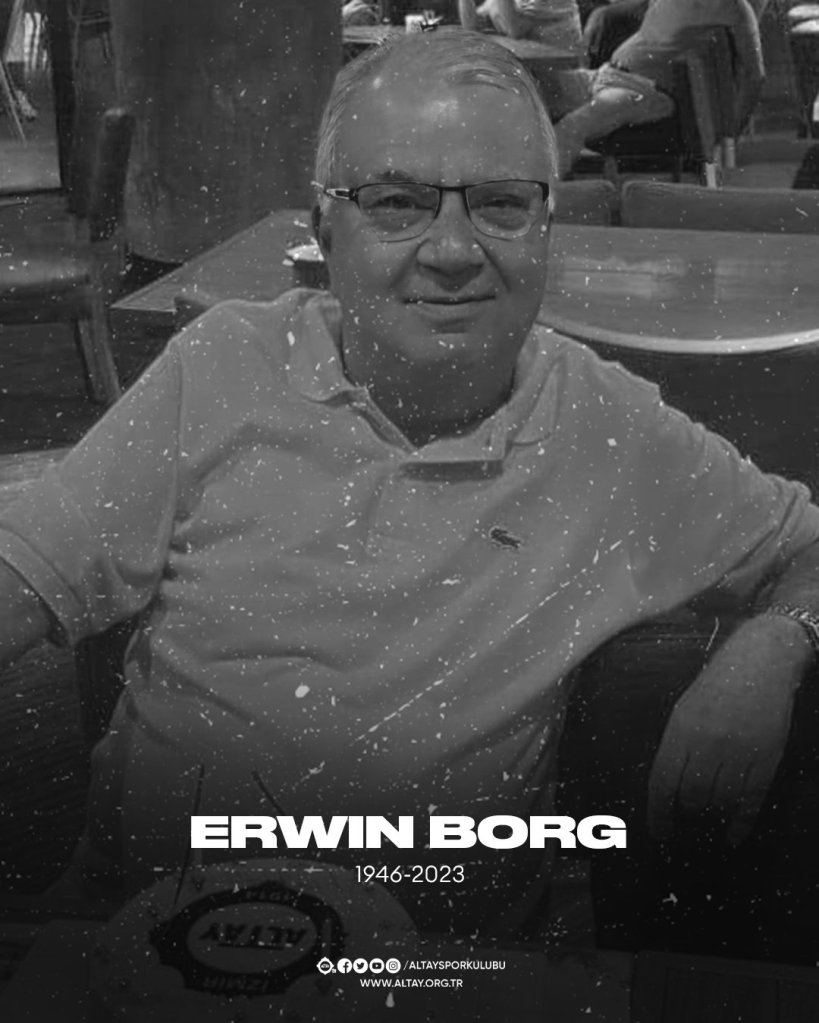 Altay Bir Dönem Yönetim Kurulu Üyesi Yapan Ve Onursal Üyesi Erwin Borg Maalesef Vefat Etti. Erwin Borg’un Cenaze Töreni 29 Eylül Cuma günü Alsancak Domeniken Kilisesi’nden saat 11:00’da Kaldırılacak. İzmirsporu Olarak Allah Rahmet Eylesin Mekanı Cennet Olsun Altay Camiası Başsağlığı Diliyorum.
