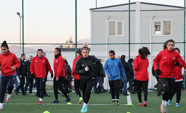 Halkapınar Spor Tesisi’ne gelerek oyuncularla yakından ilgilenen Konak Belediye Başkanı Abdül Batur, “Sizlere güveniyorum. En güzel şekilde kentimizi temsil edeceğinizi biliyorum. Her zaman yanınızdayız, bunu hiç unutmayın. İzmir’i temsil eden bir takımımız var. Geçmişten bu yana en başarılı kadın futbol takımı. Bu sezon takımın çoğu genç arkadaşlarımızdan oluşuyor, bu olumlu bir şey. İlk maçta gayet iyiydiniz. Bu hafta da Trabzon’dayız. Sizlere başarılar diliyoruz. Her zaman yanınızdayız. Kadın futbolu ismini İzmir’de Konak Belediyespor Kadın Futbol Takımı ile duyurdu. Türkiye’de ve Avrupa’da ismini duyuran bir takım. Konak Belediyesi’ne, kentimize layık bir şekilde, centilmence mücadele edeceğiz” ifadelerini kullandı. DİDEM TAŞ: BATUR’A TEŞEKKÜR EDİYORUZ